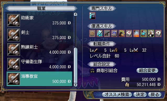 よくなる職業:海兵隊、砲術家、上級士官、薬品商