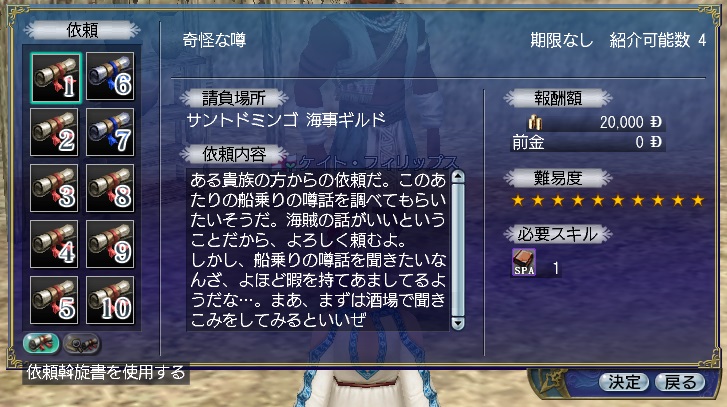 前提クエはドミンゴの「奇妙な噂」、街中で話を聞いて回るだけのクエです。