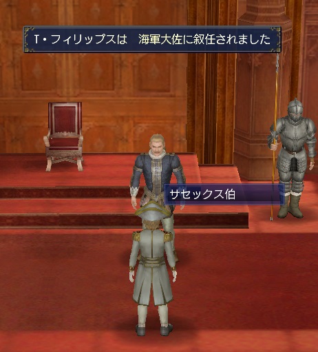 2ndキャラ、フランス出身だがイングランドに亡命する。取引スキルに圧迫されて冒険、海事スキルはほとんど持っていない。Lv条件を満たしてついに念願のフィロゾフになる。縫製、調理、工芸、鋳造カンスト、錬金術R13