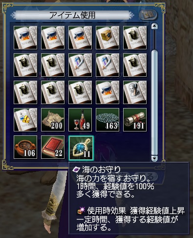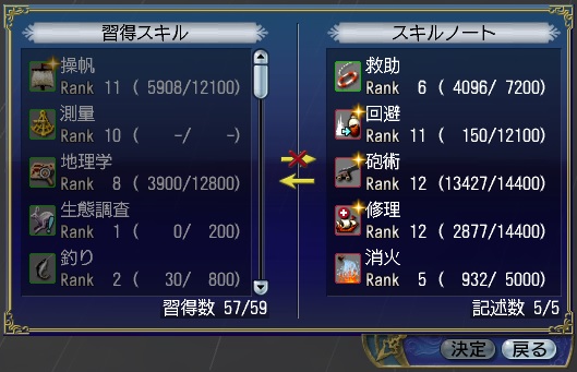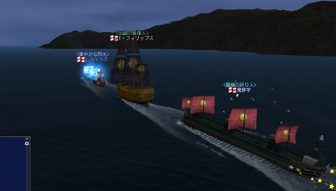 3rdキャラで冒険、海事キャラ。気楽に遊ぶキャラのはずが事実上のメインキャラとなる。3キャラの中で発見物が一番多い。たいていのことは一人でできる。最近はGガナ挑戦中。縫製、調理、工芸、鋳造カンスト