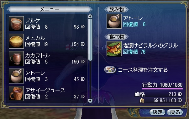 3rdキャラで冒険、海事キャラ。気楽に遊ぶキャラのはずが事実上のメインキャラとなる。3キャラの中で発見物が一番多い。たいていのことは一人でできる。最近はGガナ挑戦中。縫製、調理、工芸、鋳造カンスト