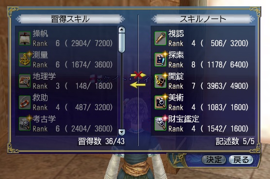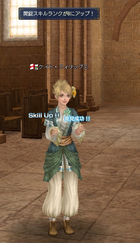 2ndキャラ、フランス出身だがイングランドに亡命する。取引スキルに圧迫されて冒険、海事スキルはほとんど持っていない。Lv条件を満たしてついに念願のフィロゾフになる。縫製、調理、工芸、鋳造カンスト、錬金術R13