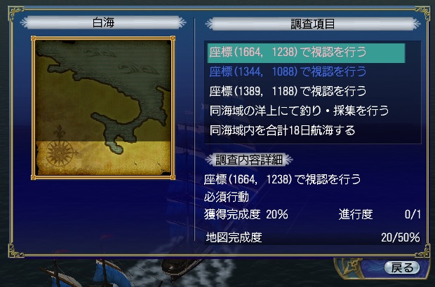 Y県Y市からM県S市に引っ越して1か月くらいになります。DOLにインした時はだらだらとケイトで冒険してましたが、海域調査をやりました。