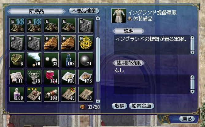 1stキャラ、メインキャラの座をケイトに奪われる。陸戦は鉄砲が主力、一応奥義まで習得している。工芸、鋳造、造船カンスト