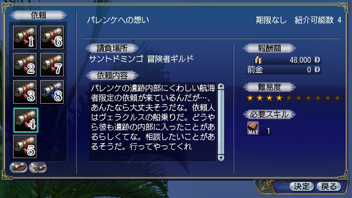 中層前提はサントドミンゴの冒険クエです。