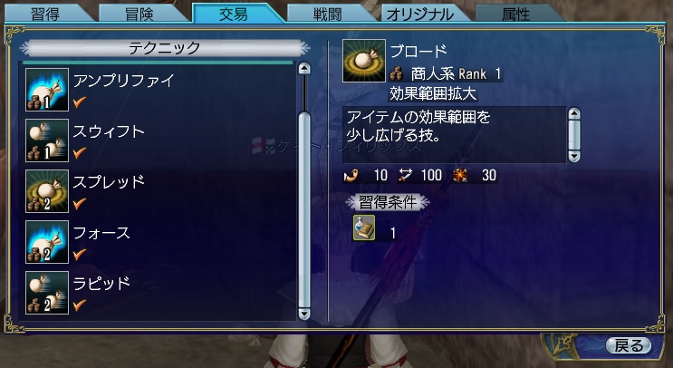 テクニックの習得ではブーストが効くので、天目茶碗でブーストします。
