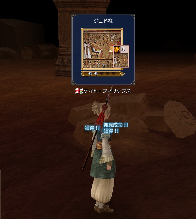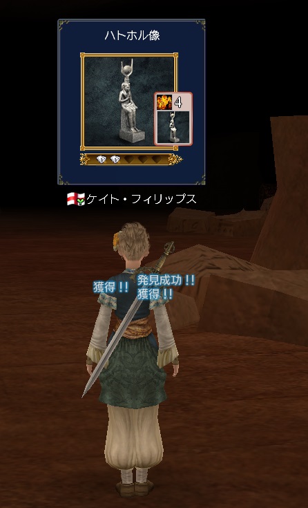 3rdキャラで冒険、海事キャラ。気楽に遊ぶキャラのはずが事実上のメインキャラとなる。3キャラの中で発見物が一番多い。たいていのことは一人でできる。最近はGガナ挑戦中。縫製、調理、工芸、鋳造カンスト