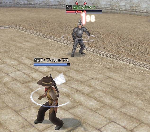 鎧を着ているのは開発スタッフ(ボウガン)です。