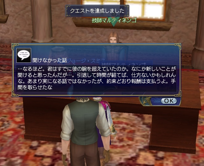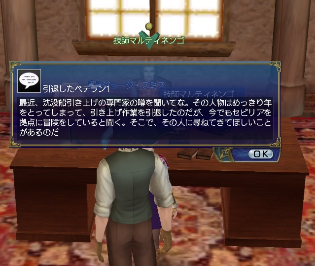 2ndキャラ、フランス出身だがイングランドに亡命する。取引スキルに圧迫されて冒険、海事スキルはほとんど持っていない。Lv条件を満たしてついに念願のフィロゾフになる。縫製、調理、工芸、鋳造カンスト、錬金術R13