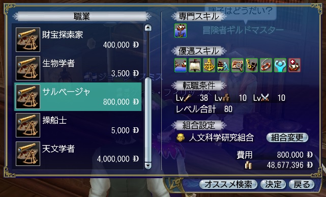 よくなる職業:地図職人、史学家、上級士官