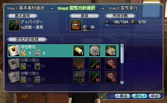 材料は魔術の刻印と断片地図とオリハルコンです。刻印は在庫があったのでそれを使いました。
