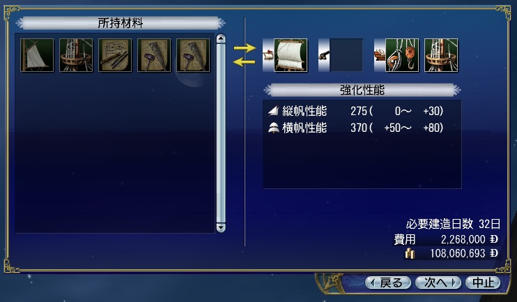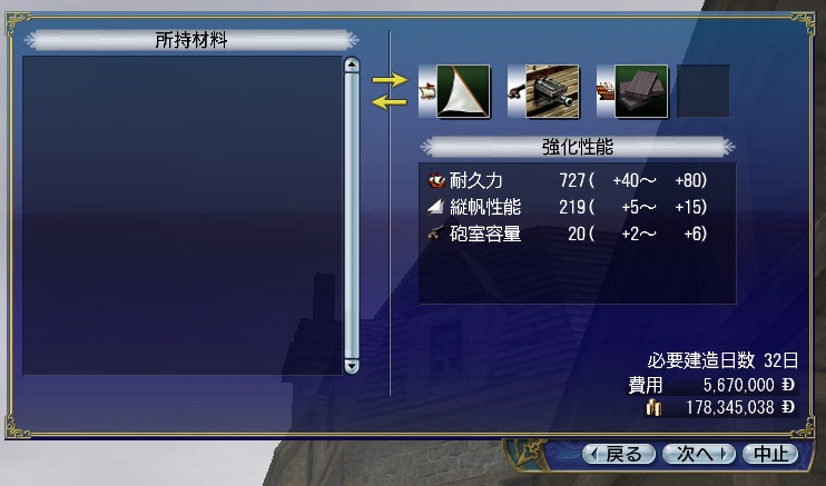 いったん初期化するので、夜戦木材を入れるほかは適当です。