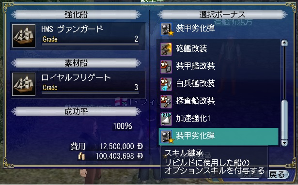 6/6  大スクウェア、改良大型砲門、救命艇、夜戦金属。途中で16門砲を5基つめないことに気付いて砲門を突っ込みました。夜戦金属はロマンです。