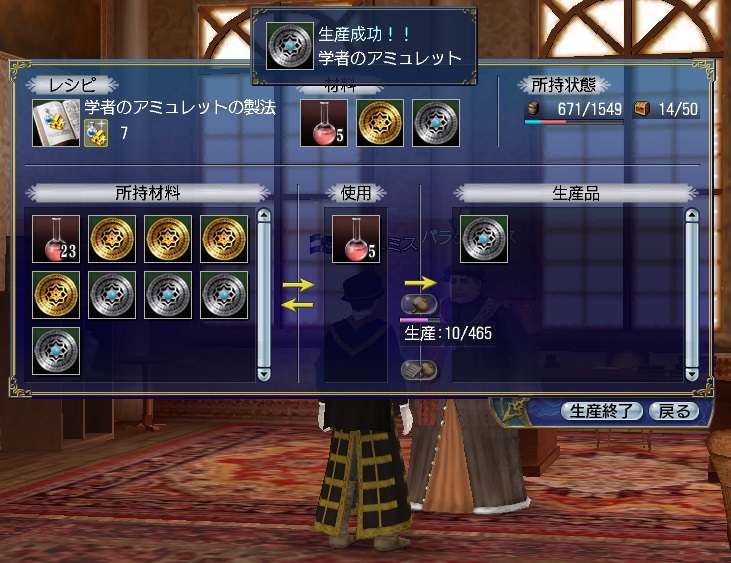 赤い錬金薬5・エジプト女神の護符・旅人のアミュレットから学者のアミュレットを作ります。