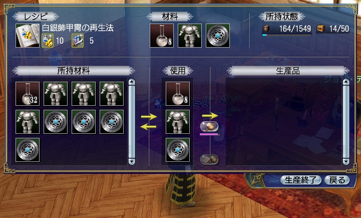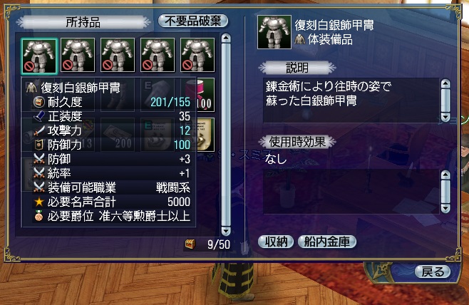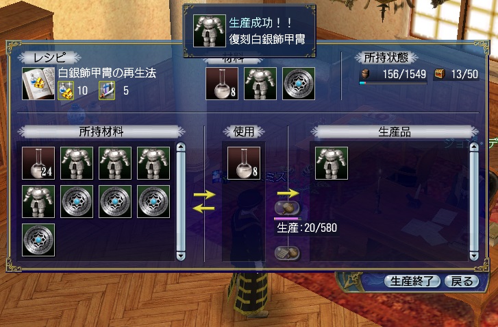 金箔飾甲冑の精製は失敗がありますが、白銀飾甲冑はありません。