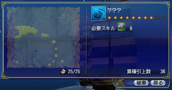 取ったのは、沈没船画面を開くと沈没船の海域が分かるスキルです。