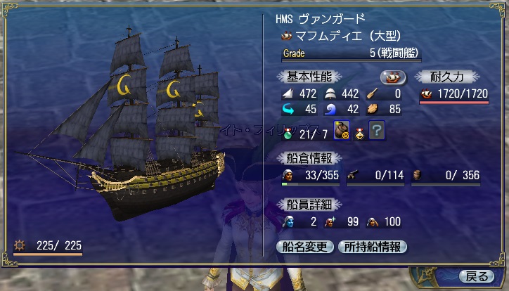 1stキャラ、メインキャラの座をケイトに奪われる。陸戦は鉄砲が主力、一応奥義まで習得している。工芸、鋳造、造船カンスト