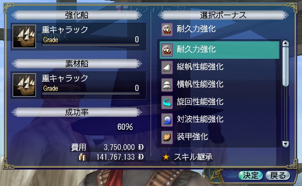 1stキャラ、メインキャラの座をケイトに奪われる。陸戦は鉄砲が主力、一応奥義まで習得している。工芸、鋳造、造船カンスト