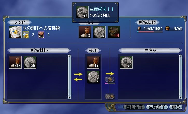 塩*12、白い鉱石*10、刻印*1で白薬液ができます。