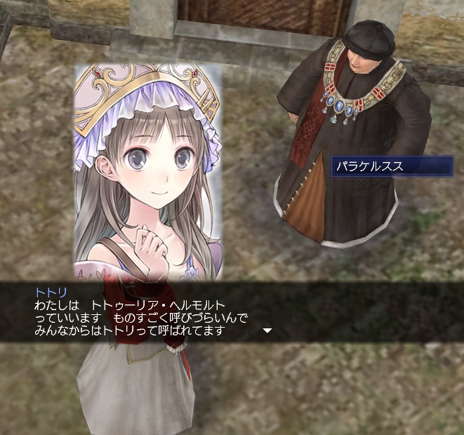 3rdキャラで冒険、海事キャラ。気楽に遊ぶキャラのはずが事実上のメインキャラとなる。3キャラの中で発見物が一番多い。たいていのことは一人でできる。最近はGガナ挑戦中。縫製、調理、工芸、鋳造カンスト