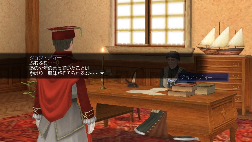 2ndキャラ、フランス出身だがイングランドに亡命する。取引スキルに圧迫されて冒険、海事スキルはほとんど持っていない。Lv条件を満たしてついに念願のフィロゾフになる。縫製、調理、工芸、鋳造カンスト、錬金術R13