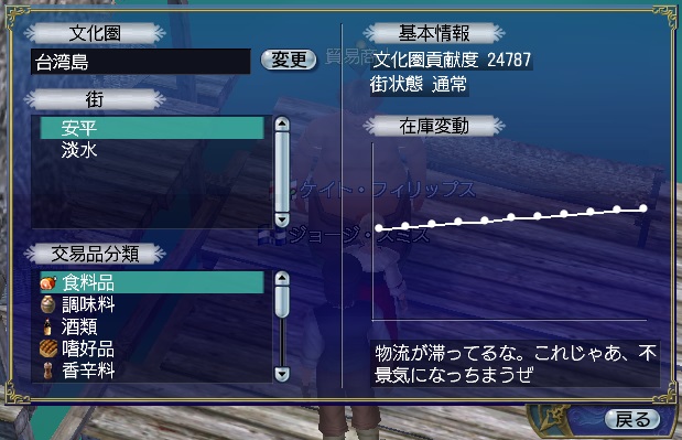 1stキャラ、メインキャラの座をケイトに奪われる。陸戦は鉄砲が主力、一応奥義まで習得している。工芸、鋳造、造船カンスト