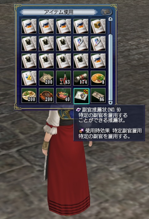 1stキャラ、メインキャラの座をケイトに奪われる。陸戦は鉄砲が主力、一応奥義まで習得している。工芸、鋳造、造船カンスト