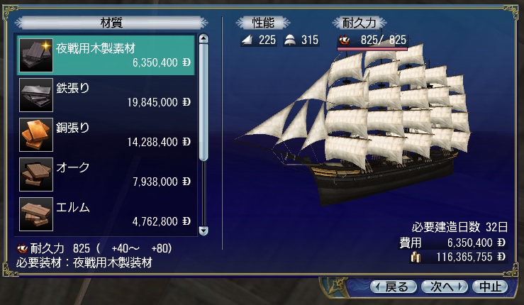 船体を持ち込んで新造すると、船を選ぶことができます。