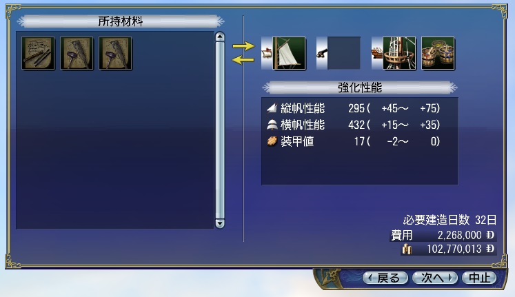 こんにちは、フィリップスです。今回のアップデートで強化回数が増えた船があったので改装しました。