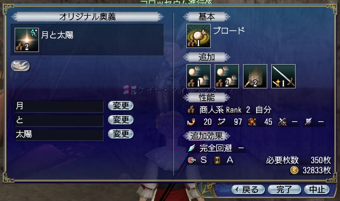 高難易度のダンジョンに行くときにはあったほうがいいので、ケイトでも完全回避テクを作ることにしました。