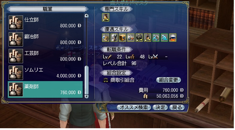 調べたところ薬剤師が使えそうだったので転職クエをやってきました。