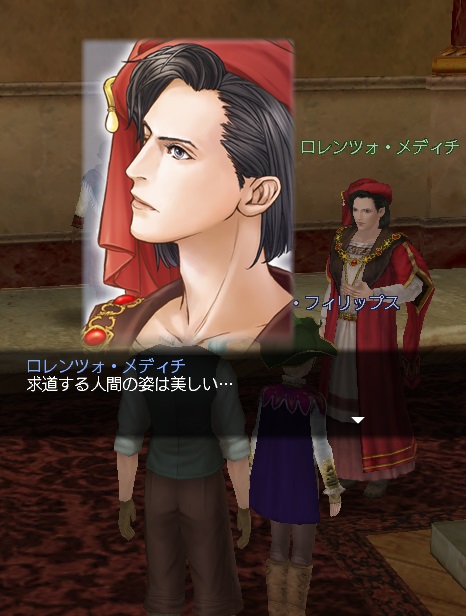 2ndキャラ、フランス出身だがイングランドに亡命する。取引スキルに圧迫されて冒険、海事スキルはほとんど持っていない。Lv条件を満たしてついに念願のフィロゾフになる。縫製、調理、工芸、鋳造カンスト、錬金術R13
