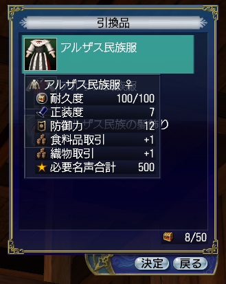2ndキャラ、フランス出身だがイングランドに亡命する。取引スキルに圧迫されて冒険、海事スキルはほとんど持っていない。Lv条件を満たしてついに念願のフィロゾフになる。縫製、調理、工芸、鋳造カンスト、錬金術R13