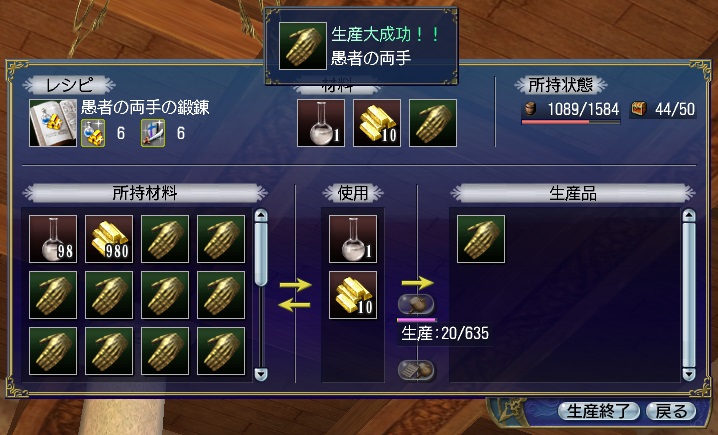 薬液の数がそろったので、愚者の両手を作ってきました。